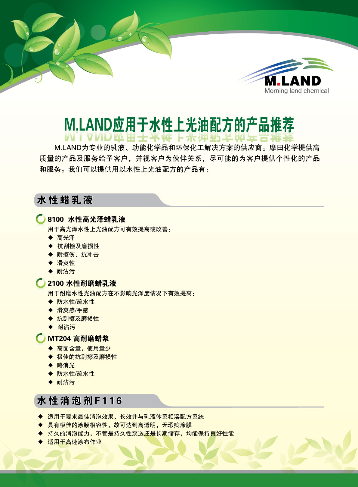 | 应用于水性上光油的产品推荐一 | 0.23M | 2015-09-07 | 2292 | ![]() |