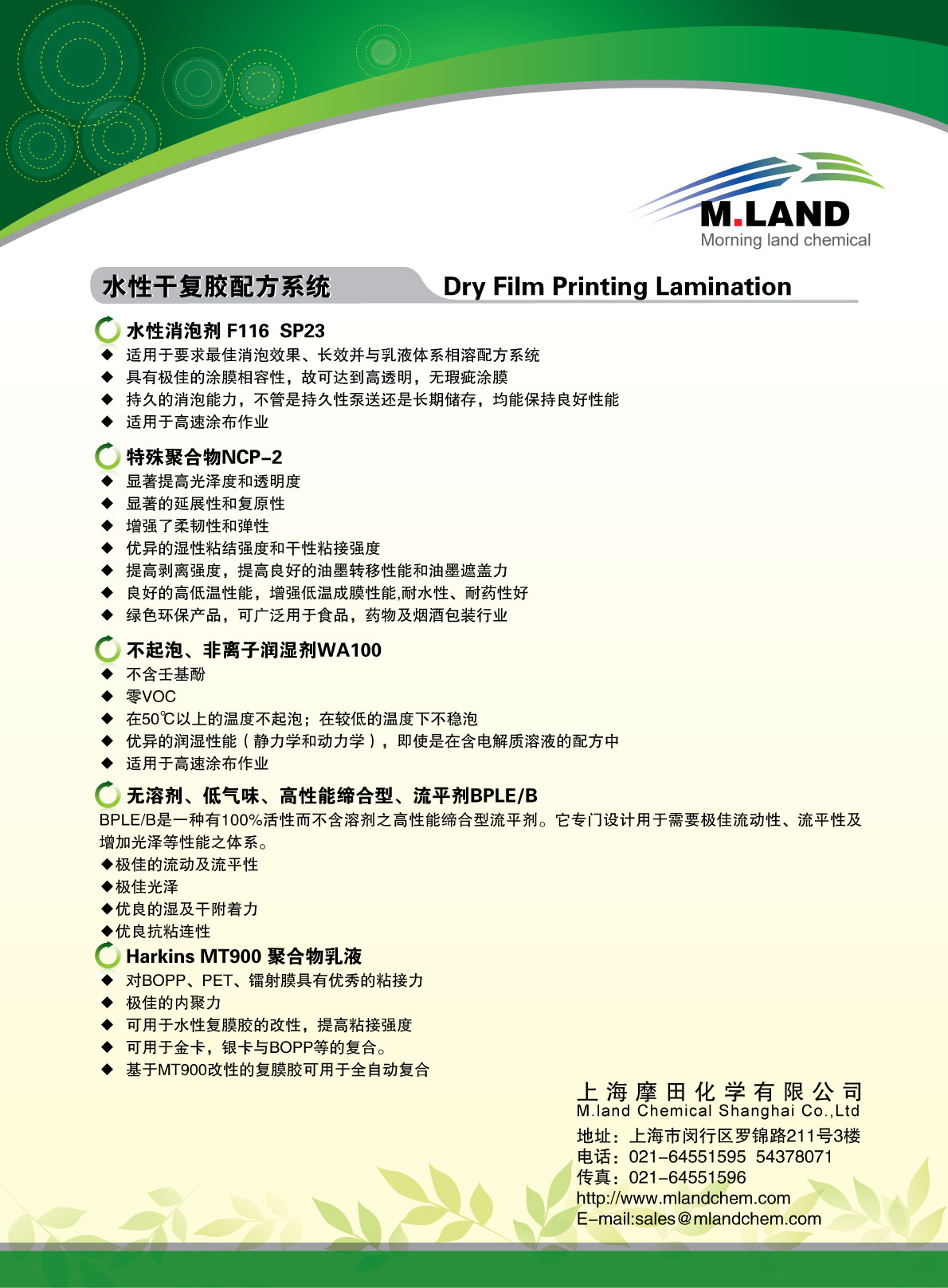 | 应用于水性复膜胶的产品推荐一 | 0.28M | 2015-09-07 | 2965 | ![]() |